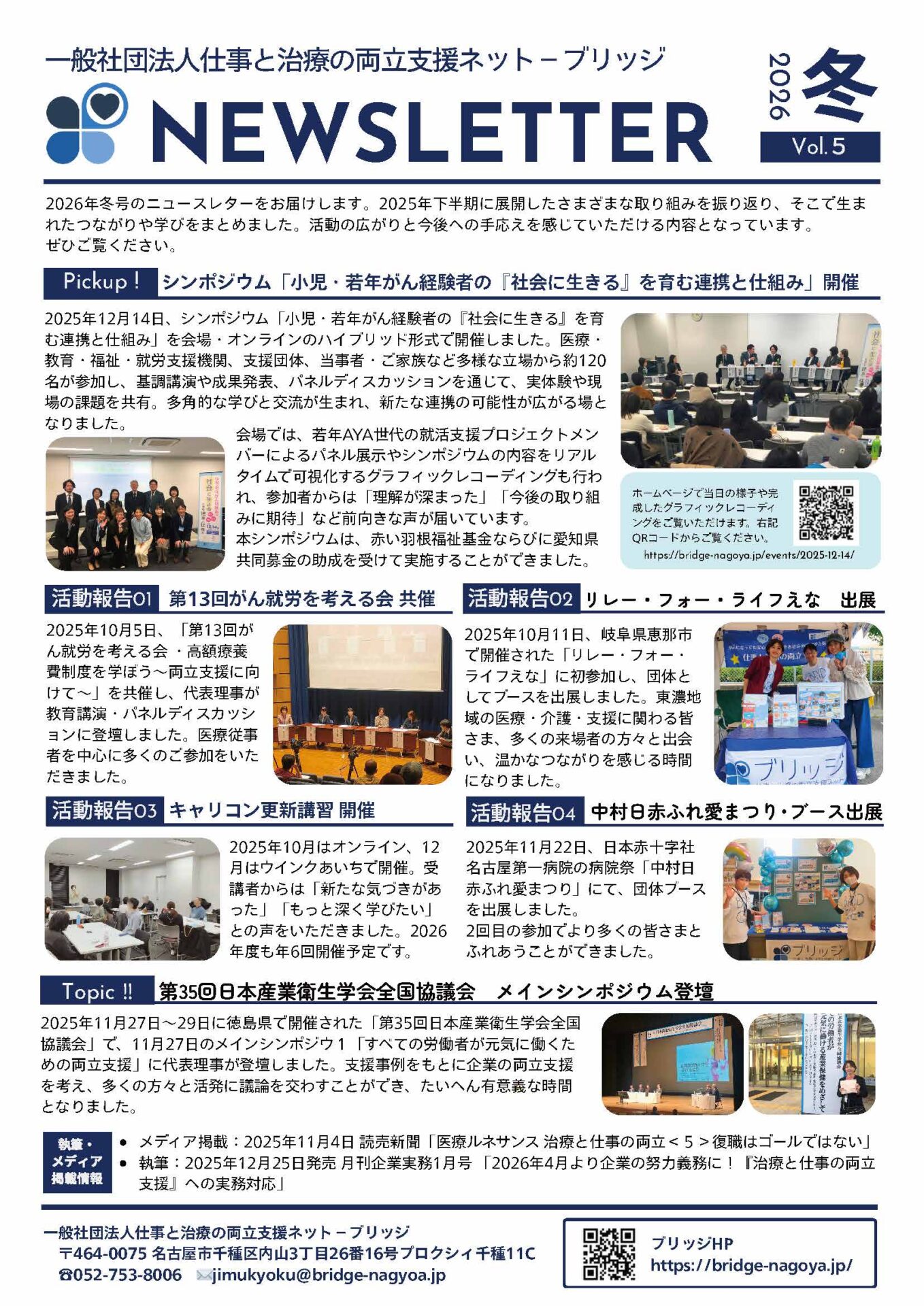 資料ダウンロードページ ブリッジの支援活動をご理解いただき、必要と思われる患者さんや学生さんにお渡しいただけますと幸いです。ぜひ、以下の各カテゴリーに該当する資料をダウンロードしてご活用ください。ご不明な点がございましたら、どうぞお気軽にお問合せください。 INDEX医療機関の方へ:患者向け資料大学など教育機関の方へ:若年AYA世代の学生向け資料企業の方へ:人事、産業保健担当者向け資料ブリッジNEWS Letter医療機関の方へ:患者向け資料 ダウンロード 大学など教育機関の方へ:若年AYA世代の学生向け資料 ダウンロード 企業の方へ:人事、産業保健担当者向け資料 ダウンロード ブリッジNEWS Letter ダウンロード ダウンロード ダウンロード ダウンロード ダウンロード