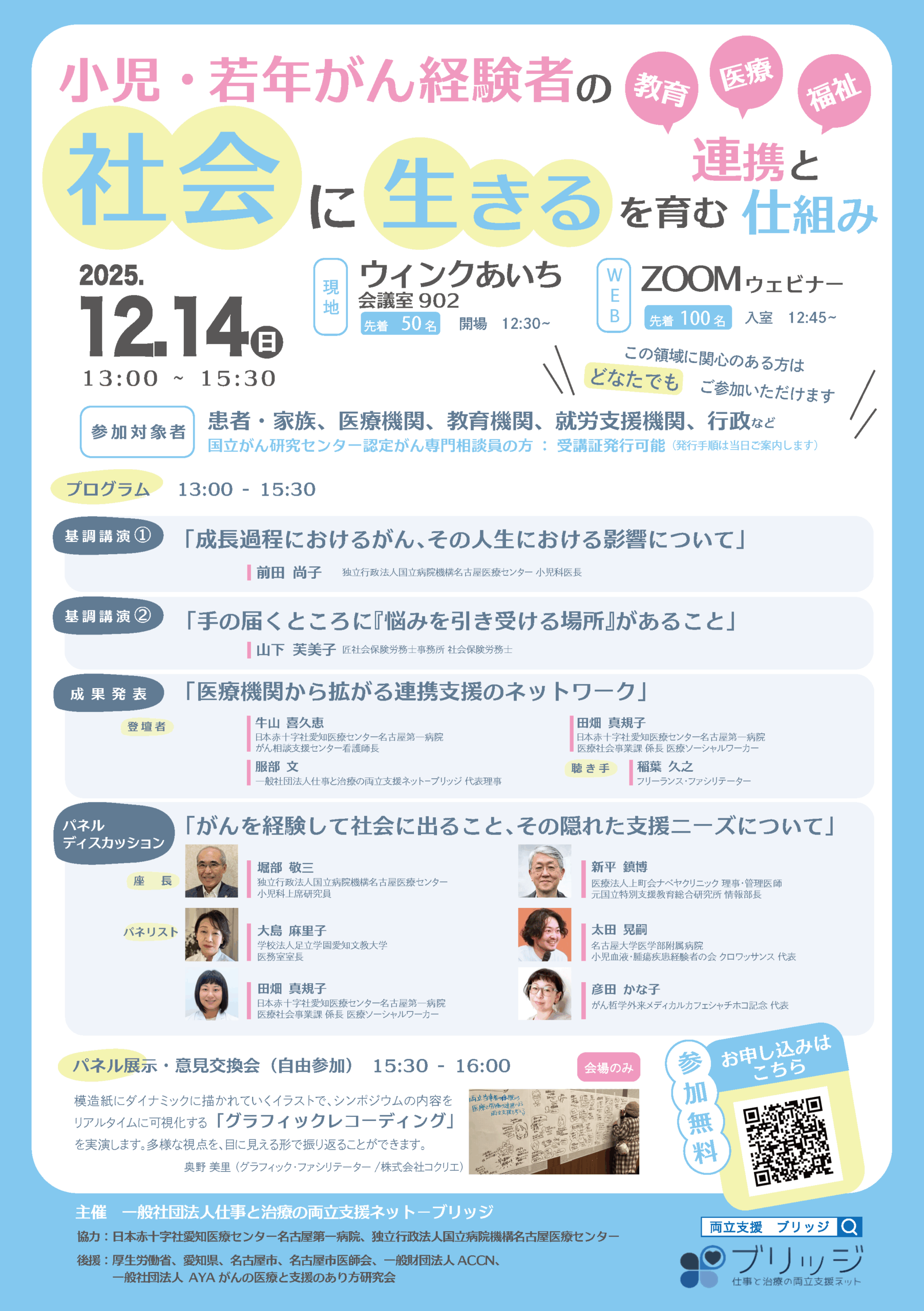 ブリッジが取り組む「若年AYA世代の就活支援プロジェクト」は、がんを罹患・経験した若者が、それを乗り越えて初めて就職活動する際に直面する様々な困難への支援の充実を図ることを目的としており、今回、関係者へのアンケート実施により課題が整理され、それを基に、関係者への啓発、ならびに連携を図ることで支援の充実が期待される。初めての就職活動の多くは、高校、専門学校、大学、大学院の卒業を控えた時期であり、将来への夢と迷いの最中にがんと向き合うことになり、希望通りの進路を描けないこともしばしばである。